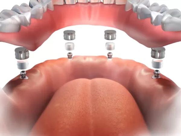 All on 4 implant tedavisinde tüm dişler için ayrı ayrı implant yerleştirmek yerine çene kemiğinin dört farklı noktasına implant yerleştirilir. Bu sayede implant kökleri üzerine eklenecek protez dişlerin sabitlenmesi sağlanır. All on 4 implant köklerinin ikisi ön tarafta ikisi de arka tarafta bulunur. Son derece hızlı bir yöntem olan all on four implant tedavisiyle kısa sürede başarılı sonuçlar almak mümkündür. All on four implant tekniği esnasında uygulanan aşamalar ise şu şekilde sıralanabilir: